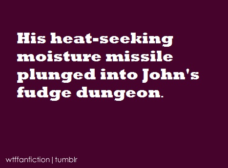 “His heat-seeking moisture missile plunged into John’s fudge dungeon.”