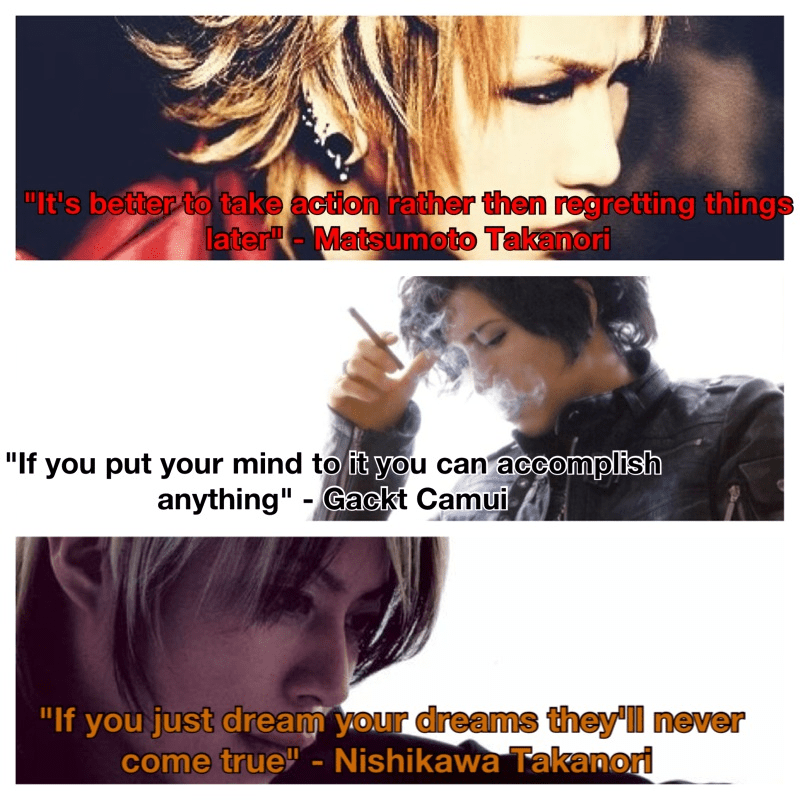 I’ve been on this for a couple of days and I think I’ve finally got it down. Enjoy Ruki, Gackt, and T.M.Revolution with a few words of inspiration.